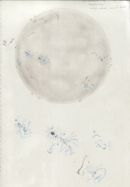 A rajzok egy 76/900-as Newton távcsőben látottak alapján készültek. A távcsövön Baader napfólia volt. A vázlatrajz alapján készülnek el a végleges digitális rajzok.