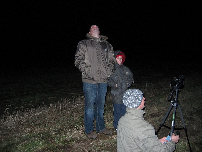 maximumot láthassuk. A műholdképek elemzése után Gazdag Attilával úgy döntöttünk, hogy maradunk Nagykanizsa közelében és a már régről bevált Nagyrécse és Nagykanizsa közt elterülő szántóföldről fogunk észlelni. A siker érdekében még véráldozatot is bemutattunk, jelesül az észlelés előtt még részt vettünk a véradó hét eseményén és kb. fél liter vérrel könnyebben és kb ugyanennyi szaloncukorral gazdagabban vágtunk neki az észlelésnek. Még csatlakozott a csapathoz Gazdag Kristóf és Pető Zsolt. A pozíciónkat 18:50-kor foglaltuk el. Pető Zsolt 19:08-kor sikerrel lefotózott egy Iridium műhold felvillanást. (Lásd képek).19:35-ig kb 20 meteort láttunk a viszonylag zavartalan égen. Váltakozva jöttek, mentek a felhők de mindig akadt elég nagy méretű tiszta terület. A meteorok, közt ebben az időszakban volt egypár -1, 0-as fényrendű, de a többség halványabb volt. Még várattak magukra az igazi "geminidás" meteorok. Aztán a 19:35-20:00 közötti időszakban érezhetően megnövekedett az aktivitás. Jó pár -3mg, lassú, hosszú pályát befutó meteort láttunk a zenit közelében és összességében 27 db-ot számoltunk. Fél kilenc körül megpillantottuk a kelő Holdat is, miközben a felhőzet is bezáródott a fejünk felett és elkezdett esni az eső. Ennek ellenére jó szívvel tértünk haza, hogy sikeres volt az expedíciónk!