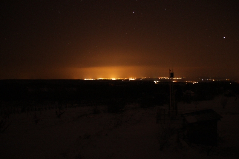 Tegnap estére Nagykanizsa ill. Becsehely felett derült lett az ég. A napnyugta körüli ég színei nagyon biztatóak voltak, hogy érdemes lesz kimenni és megnézni a szupernóvát ill. lefotózni. Gazdag Attilával útnak is indultunk az akkor még -7 fokos hőmérséklet mellett. Kiérve a Canis Minor Obszervatóriummal szomszédos portán a sikeres vadászat illatai és húsos ládák látványa fogadott bennünket. Oké, a szarvas már meg van, most vadásszuk le a szupernóvát is! Nosza a 30 cm-es havon átgázolva kinyitottuk az obszervatóriumot, letoltuk a tetőt, üzembe helyeztük a távcsövet és egy félóra várakozás után elkezdtük az észlelést. Míg várakoztunk az égboltot vizslattuk, ami nagyon nyugtalan volt. Minden csillag ugrabugrált, a tejút látványa sem volt olyan retina égető, mint azt vártuk. Nagykanizsa fényei felé elnézve egy inverziós réteg is látszott, ami azt jelentette, hogy nem éppen egységes hőmérsékletű levegő helyezkedik el felettünk. Elsőre nem is a szupernóvát vettük célba hanem az M42-t. Hát a látvány nem volt kimondottan ideális. Borzasztó rossz volt a seeing. Szinte lehetetlen volt a képet élesre állítani, minden részlet izgett mozgott. Irány az M82. A szupernóva könnyen jött a 40cm-esben de a csillagok azok inkább krumplik voltak, mint pontok. Azért csináltunk egy-két fotót róla, hogy meg legyen örökítve - ezt is láttuk. A helyzet egy óra múlva se sokat javult, és közben a hideg is "kikezdte a szervezetünket" - pedig Attila a pálinka nevű gyógyszerrel próbálta magát ápolni - és így kicsit lógó orral hazaindultunk, az otthon melegébe. Talán majd legközelebb több szerencsénk lesz!