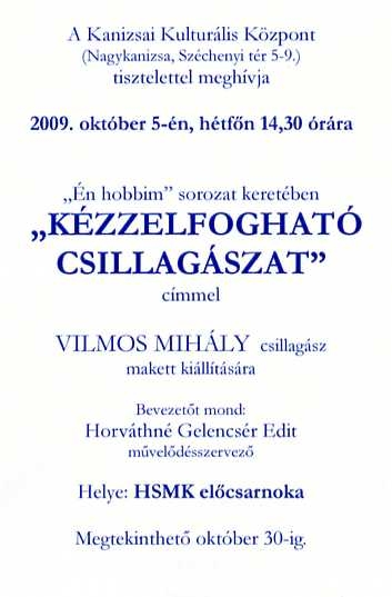 Az "Én hobbim" sorozat keretében Vilmos Mihály csillagászati makett gyűjteményének kiállítása