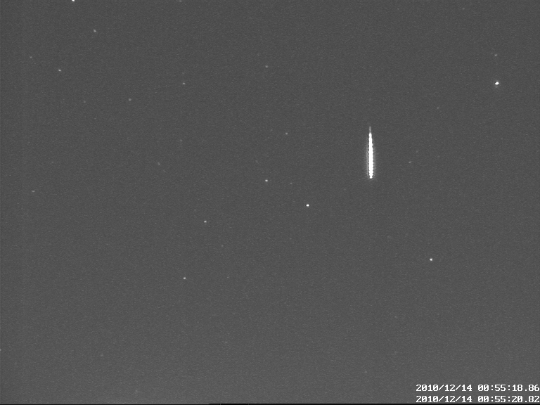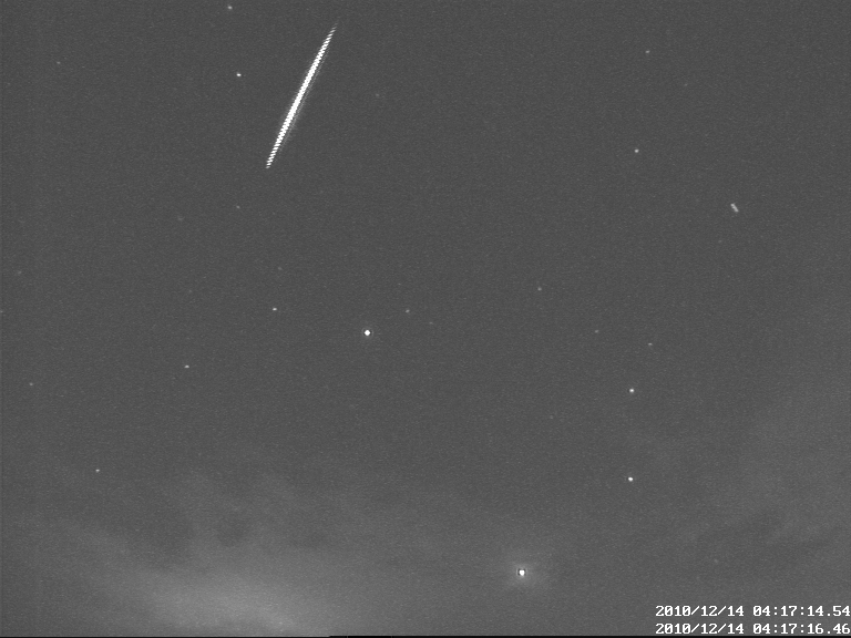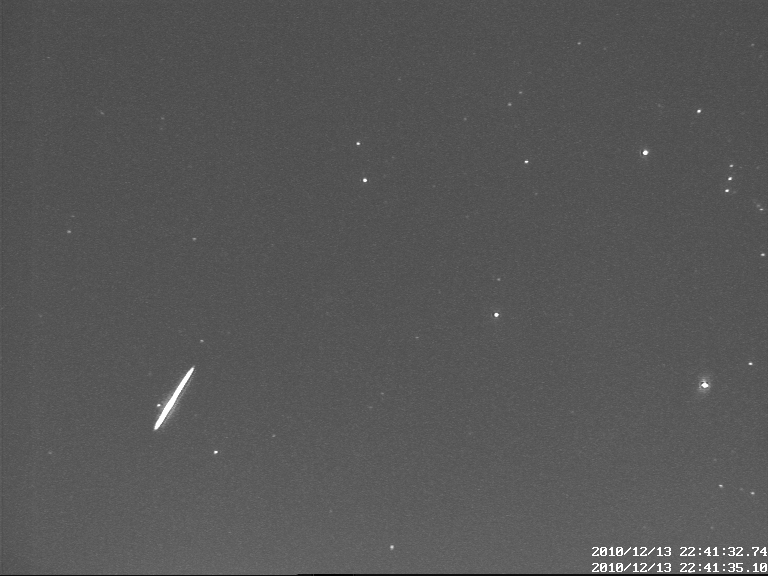 A video 45 mp-be sűrítve mutatja a 13-a 16:20-tól 14-e 05:20-ig hullott Geminida meteorokat. A kamera Igaz Antal által megvalósított videometeoros megfigyelő rendszer egyik tagjaként, a becsehelyi Canis Minor Obszervatóriumban üzemel. A kamera KDK-i irányba néz.