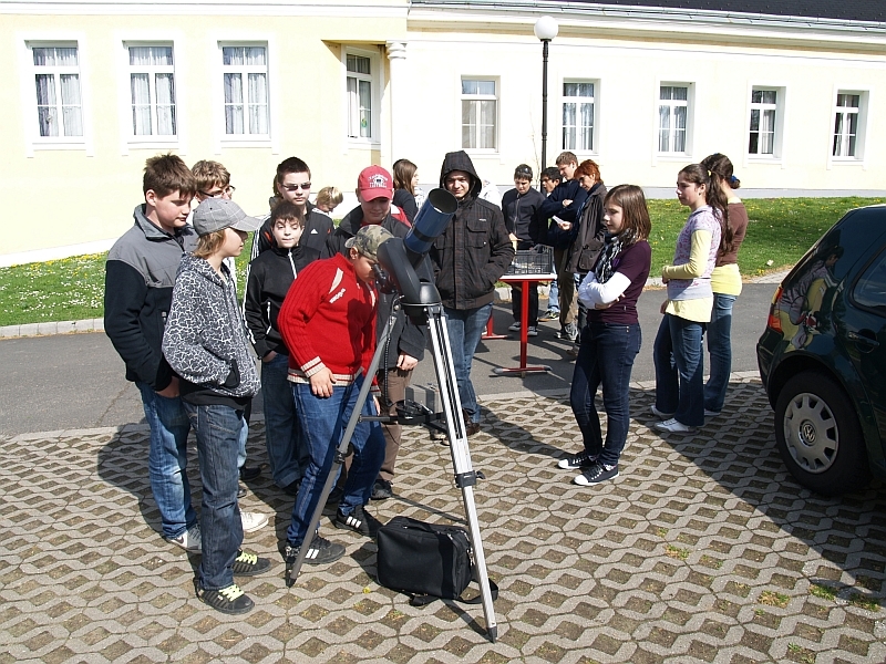 A téma a Nap távcsöves bemutatója volt,a háttérben meg ókori csillagászati eszközök, kiemelten a napórák volt a beszélgetés fő vezérvonala. Mellette a Palini iskola földrajzi tájolása folyt interaktív módon, a gyerekek közreműködésével. Ők rajzolták az árnyékvető találkozásait a körívekkel és nekik kellet ebéd után befejezni a húr felezést és az É-D vonal megrajzolását, majd az irány rögzítését a tereptárgyakhoz, az iskola udvarán. A résztvevők: az 1. osztálytól a 8. osztályig mindenki.(Kb.120 diák.)